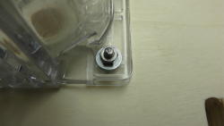 Per il supporto dove va fissato il rifilatore Makita è stato utilizzato del compensato di 20 mm di spessore. I controdadi (lato motore del rifilatore) non sono solo una sicurezza in più e non sono obbligatori, in quanto i fori della base in plastica trasparente del rifilatore sono filettati.